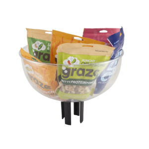 Products like our InQ-Merchandising Display Bowls boost impulse purchases. Once attached to the top of any Tensabarrier® post, the clear polycarbonate plastic allows consumers to see the contents and any bright packaging.