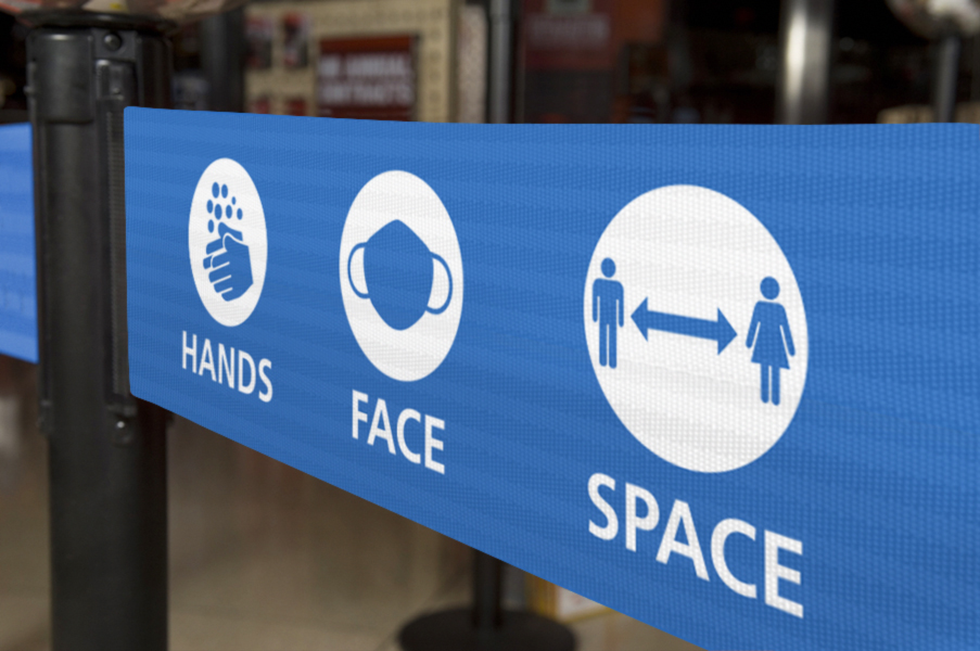 Social distancing is one of the best ways to stop the spread of the virus, so you need to ensure that safe distances are being kept in your queue. You can use our safe distance floor markers to demarcate 2-metre spacings in the queue. For crystal clear communication, you can use our custom social distancing webbing with any of our Tensabarrier retractable barrier products, to carry the latest messaging that explains the government guidelines. The webbing can be entirely customised to show any messaging or graphics that you like.