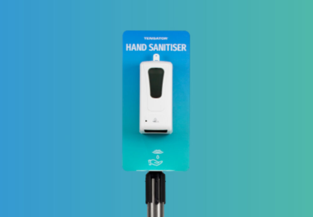 Our customisable hand sanitiser bracket can be placed on top of Tensabarrier posts, offering your customers the option to sanitise their hands whilst they queue.