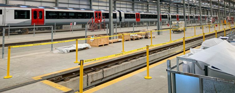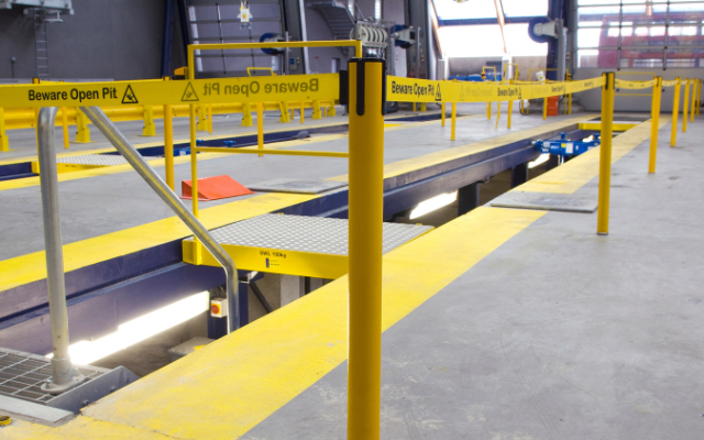 Tensator offers a selection of high visibility retractable webbing posts to improve visual safety protection around service pits, at train and bus depots.
