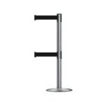 Der Abgrenzungsständer mit Zugband 889T2 Advance von Tensabarrier® verfügt nicht nur über alle Vorteile des Modells Advance, einschließlich dessen elegantem Stil und des barrierefreien niedrigen Sockels, sondern zusätzlich über ein zweites Gurtband und über eine besonders niedrig angebrachte zweite Gurtbandkassette. Dadurch wird das Hindurchschlüpfen unter der Absperrung quasi unmöglich und die Abläufe im Wartebereich verlaufen geordneter. Das niedrigere Gurtband wird auch zur Unterstützung von Sehgeschädigten empfohlen, da es leichter für diejenigen wahrzunehmen ist, die sich mithilfe eines Stockes oder eines Blindenhundes fortbewegen. Nur die obere Kassette kann ausgetauscht werden.