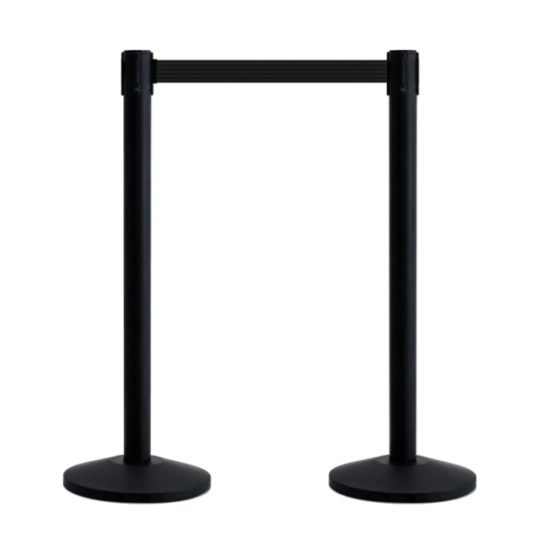 Das Set aus ausziehbaren Gurtpfosten ist die ideale Lösung für preisbewusste Kunden. Die Gurtpfosten sind schwarz, ebenso wie das Gurtband.