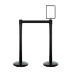 Der Absperrpfosten Tensabarrier Advance ist als Doppelpack mit einem Schilderhalter. Sie werden im Doppelpack mit einem 3,65 m langen, einziehbaren Gurt geliefert.