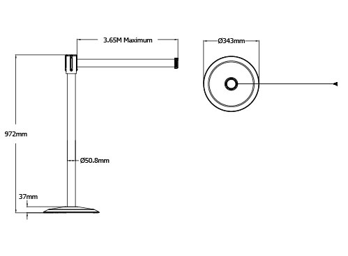 Le poteau est associé à une base et à un enjoliveur de base de type No Scuff ™ pour minimiser les impacts, ce qui en augmente la durabilité et en fait le produit idéal en milieu industriel.