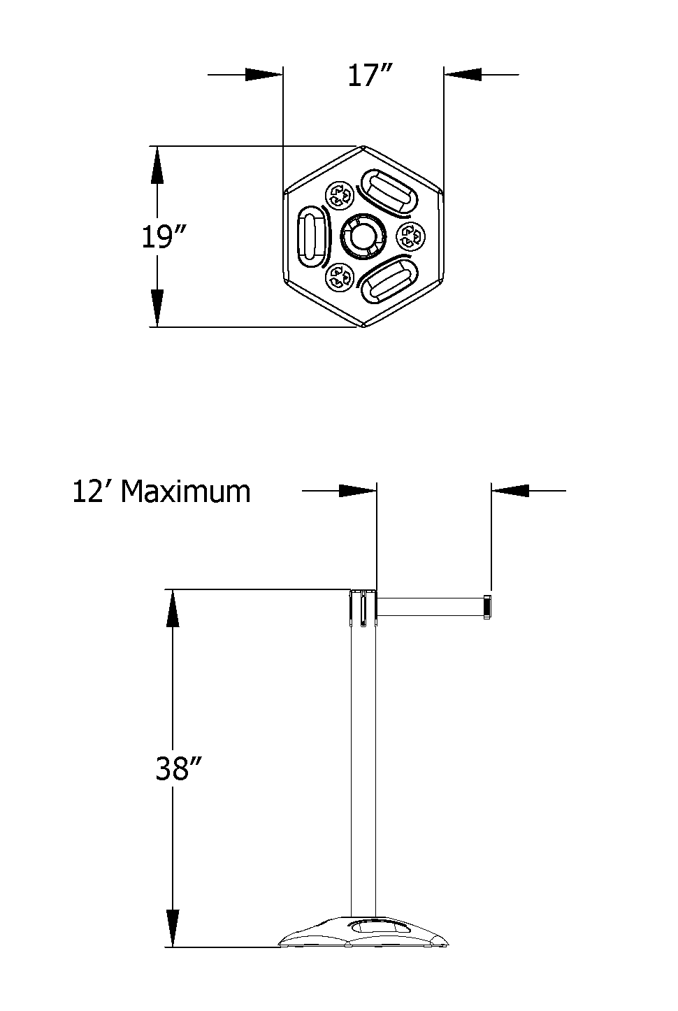 - The grey hollow base can be filled with either sand or water to stabilize. When empty, the hexagonal design of the fillable base allows for easy storage and transportation.