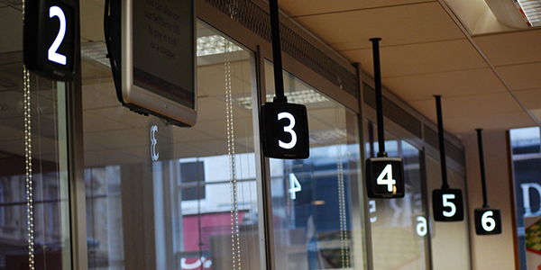The Tensator SLQ 4.0 auto call forward queuing technology automates the process of the next customer being called forward. This next generation system uses a series of sensors or links to an ePOS system to trigger calling a customer forward to a service position, getting customers through the checkout quicker and reducing operating costs.