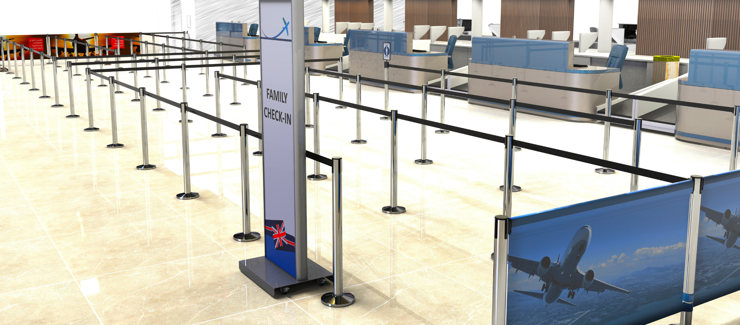 Raise brand awareness with artwork and printed messaging. A long-term solution for sprucing up your queue spaces, using strong, military-grade barrier webbing.